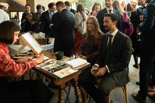 No hay nada más único que ver a un artista en acción. Tanto tú como tus invitados veréis cómo la obra va tomando forma sobre el papel, hasta convertirse en un recuerdo que lleva en cada pincelada la emoción de un día inolvidable.