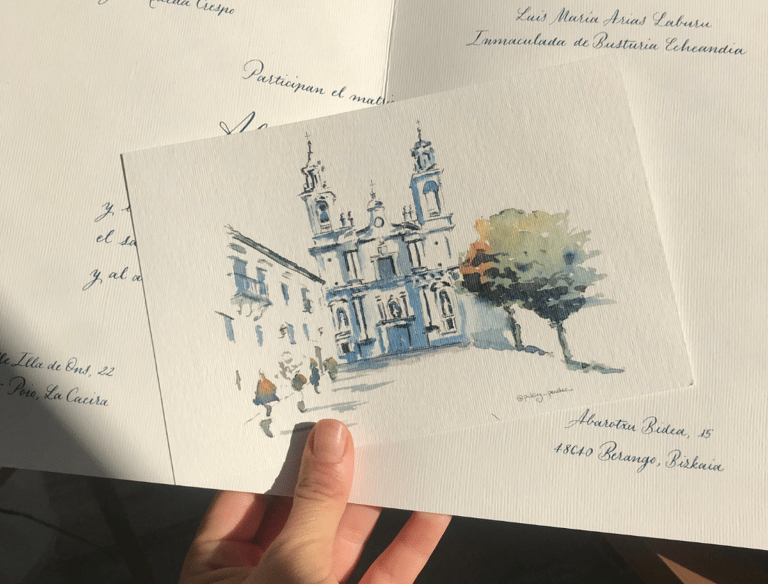 Cada ilustración está realizada a mano y posteriormente digitalizada en HD. Me gusta dedicar tiempo en hablar con los novios para conocer sus gustos y así hacer unas invitaciones originales y únicas.