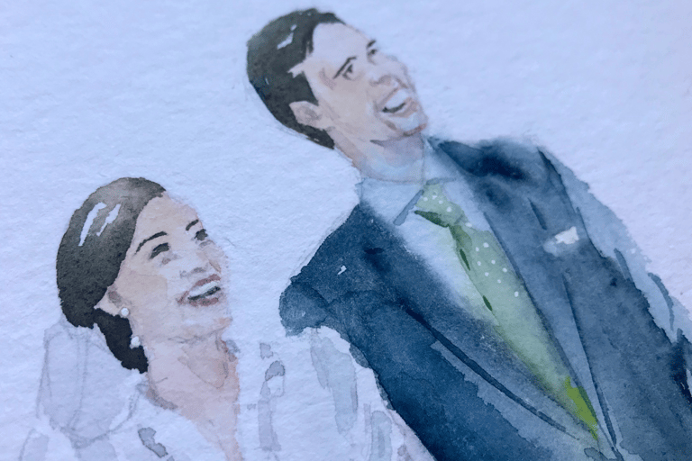 El regalo de boda que nunca olvidarán. Inmortaliza en acuarela una foto de los novios recién casados o como pareja en acuarela.